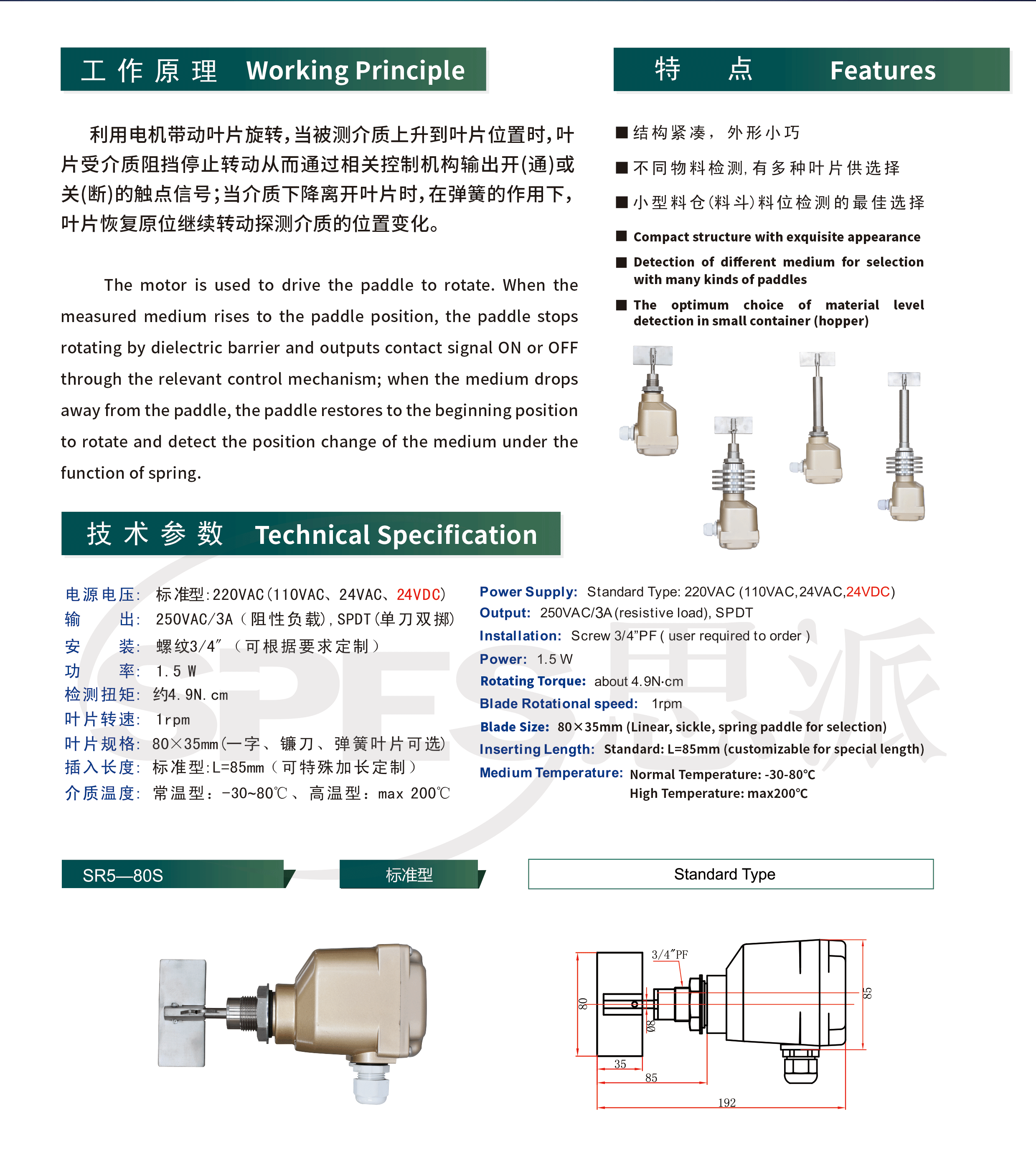 Rotary Paddle Level Switch